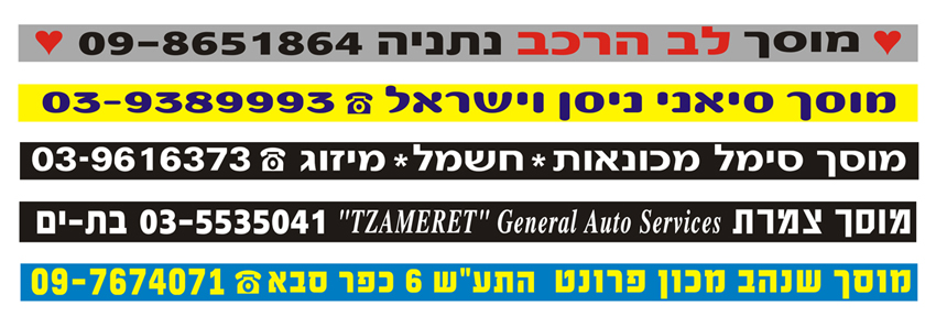מדבקות למוסכים הדפסת מדבקות למוסכים בכל הגדלים בצבעים וחומרים עמידים בתנאי חוץ ניתן להדפיס במגוון צבעים